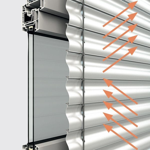 Sviluppate per ogni condizione atmosferica le lamelle del frangisole sono esposte a forti carichi causati dagli agenti atmosferici: l’irradiazione diretta del sole con temperature elevate in estate e freddo pungente in inverno. A ciò si aggiunge il movimento funzionale che consente di regolare l’intensità della luce. Per tutti questi requisiti è stata sviluppata una lamella in alluminio.