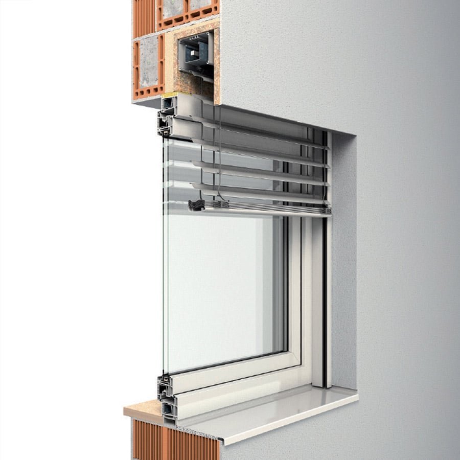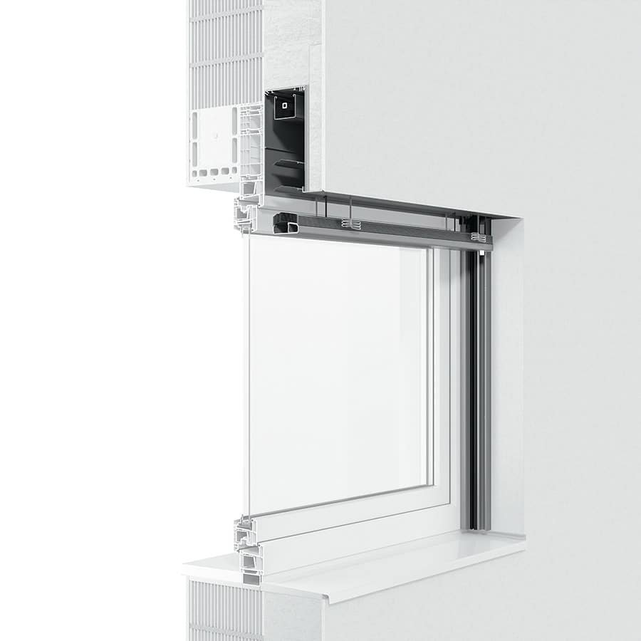 Sistema frangisole con cassonetto e guide autoportanti, ma con possibilità di integrarlo nella facciata, nascondendo la sua struttura. Possibilità di zanzariera con MODULO.XP.